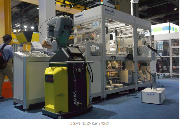 我们在工博会上展示的5G应用自动化演示模型由三个工作站共描述整个传感器产品从组件自动上料、传输、压合与拧紧、激光打标、完成卸料的完整装配工序。