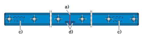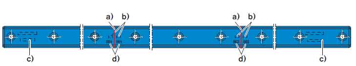 在这种多段组合导轨中,在始段和末段导轨上都有完整的标识。对接点(a)标有对接点(d)。另外,对接点还用一个编号(b)做了标记,如此给出导轨的定义连接顺序。