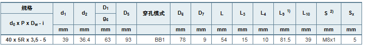 额定载荷仅对公差等级为 T3 和 T5 的有效。对于其它公差等级,请注意校正系数 fac (见通用技术说明和信息,“技术数据”,技术说明)。